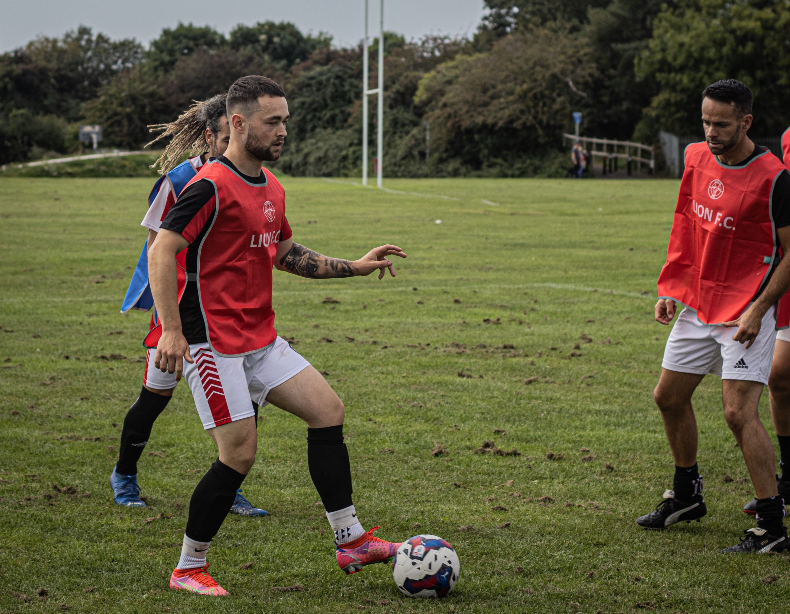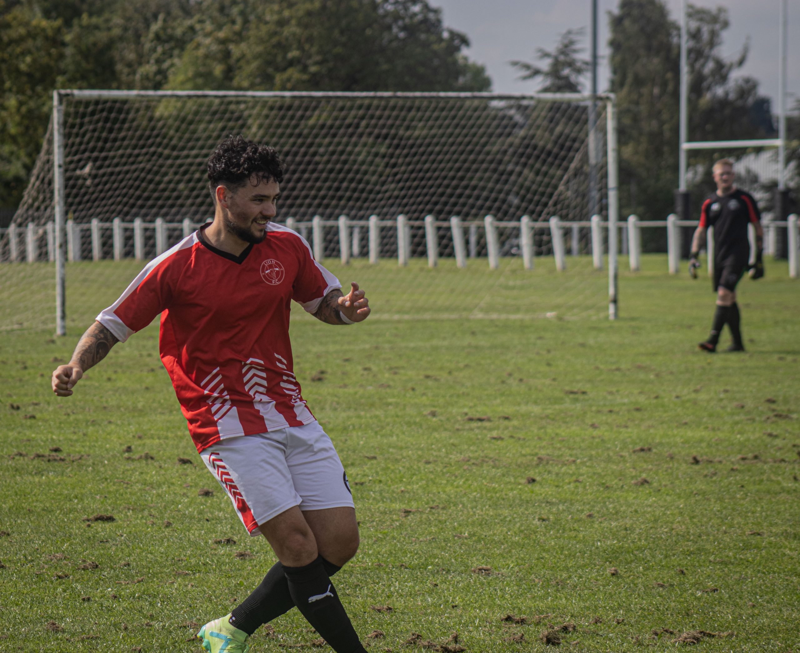 Lion were on the front foot again shortly after. When Máté’s clipped through ball was met by Jace, Jace laid it off to Ed, whose long ranged left footed effort beat the keeper, but struck the crossbar.